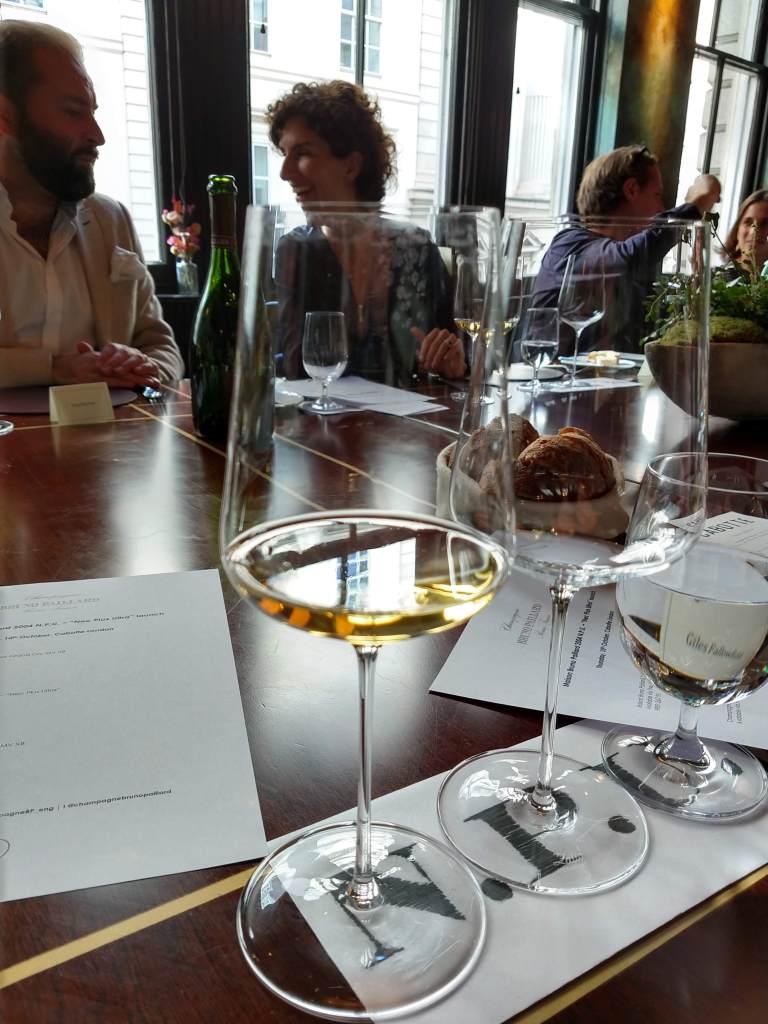 Anyhow, to the Champagne, NPU 2004. It’s a wonderful privilege to taste such wines at their release, but they are of course designed to age beautifully over years to come. The gorgeous rich gold colour and finely layered aromas hint at the opulence to come, though the palate as yet is still firm and not aromatically giving. I could smell a delicate spiciness, with acacia, tobacco leaf and roasted chestnuts. The palate has finely etched acid structure – and savoury food helped to bring out some of the baked apple and quince fruitiness which will undoubtedly come to the fore over the coming years.
